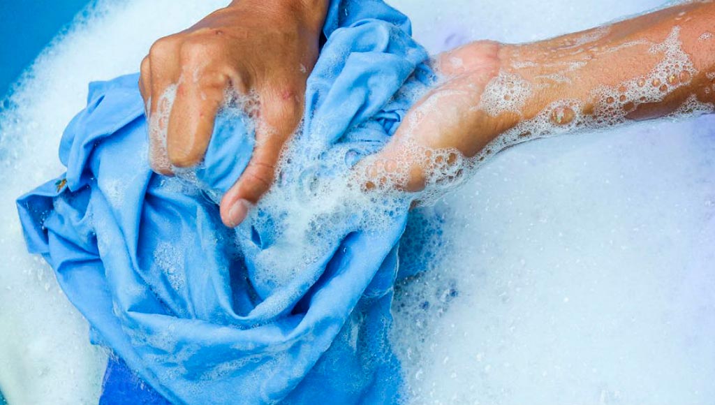 Otra forma de utilizar el jabón líquido es juntarlo con el agua y dejar que la prenda repose en la mezcla durante unas cuantas horas. Después hay que lavar de manera habitual.