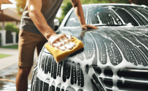 🔘 Aplicación: Con una esponja, aplicar la solución sobre la carrocería del vehículo realizando movimientos suaves y uniformes.