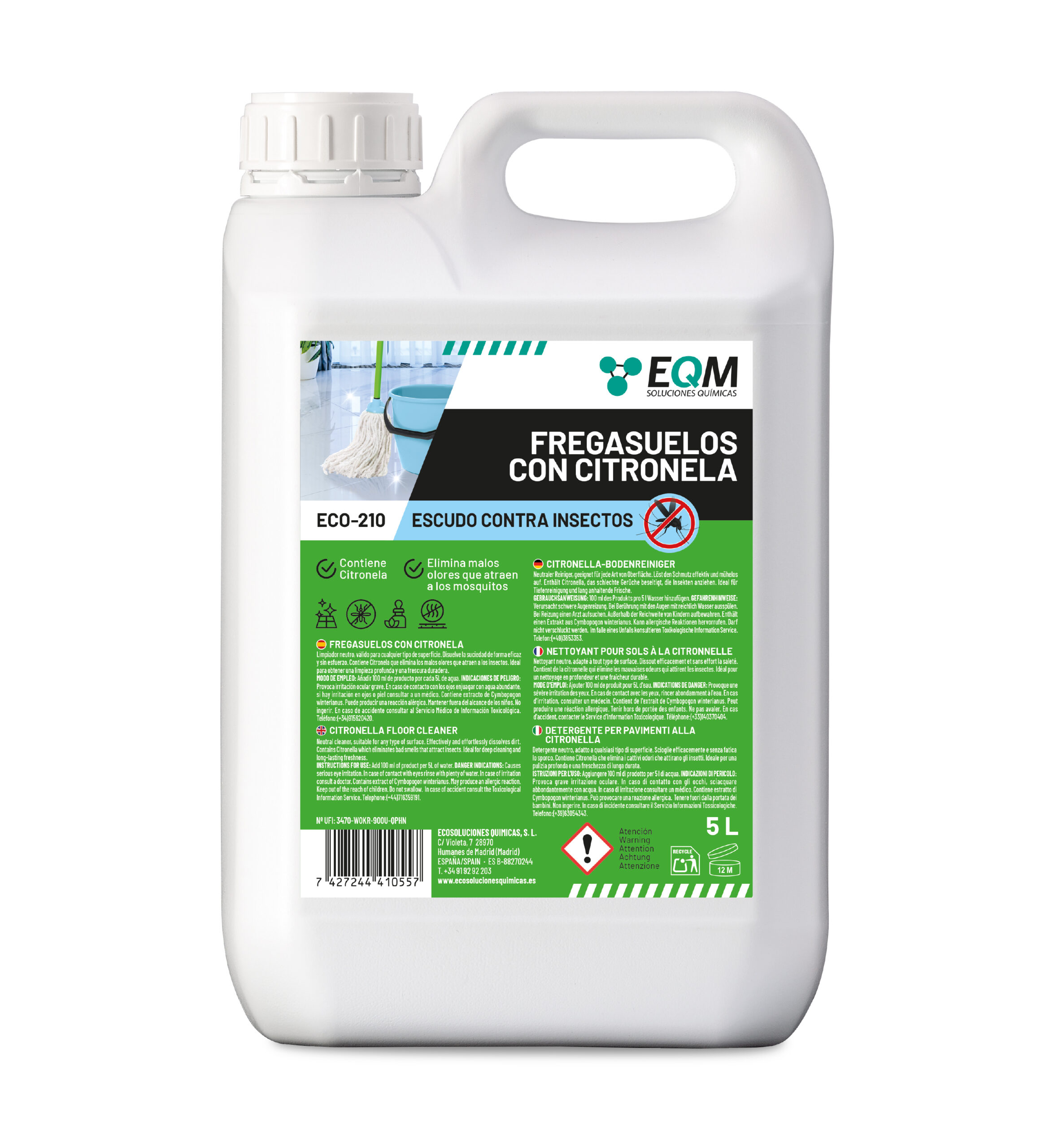 🔘 Activación: El producto activa ingredientes limpiadores, elimina suciedad, neutraliza malos olores y repela insectos con citronela.