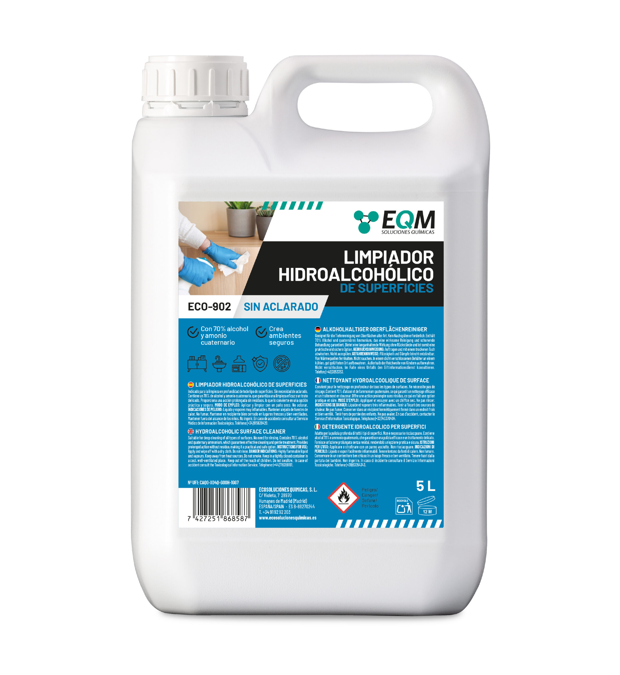 ✔ Entornos profesionales: Limpieza de escritorios, teléfonos, superficies en clínicas y hospitales, y equipos en restaurantes.