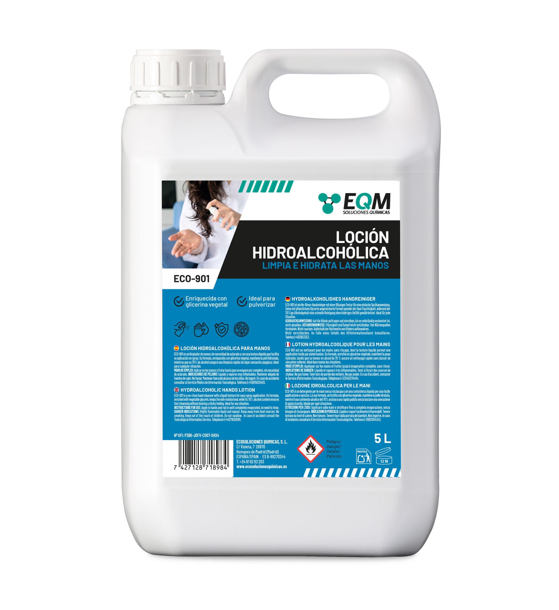 ENRIQUECIDA CON UN ALTO PORCENTAJE DE GLICERINA, ECO-901 MANTIENE LAS MANOS HIDRATADAS. Su fórmula evita la resequedad y la sensación pegajosa, manteniendo las manos suaves y nutridas incluso con uso frecuente.